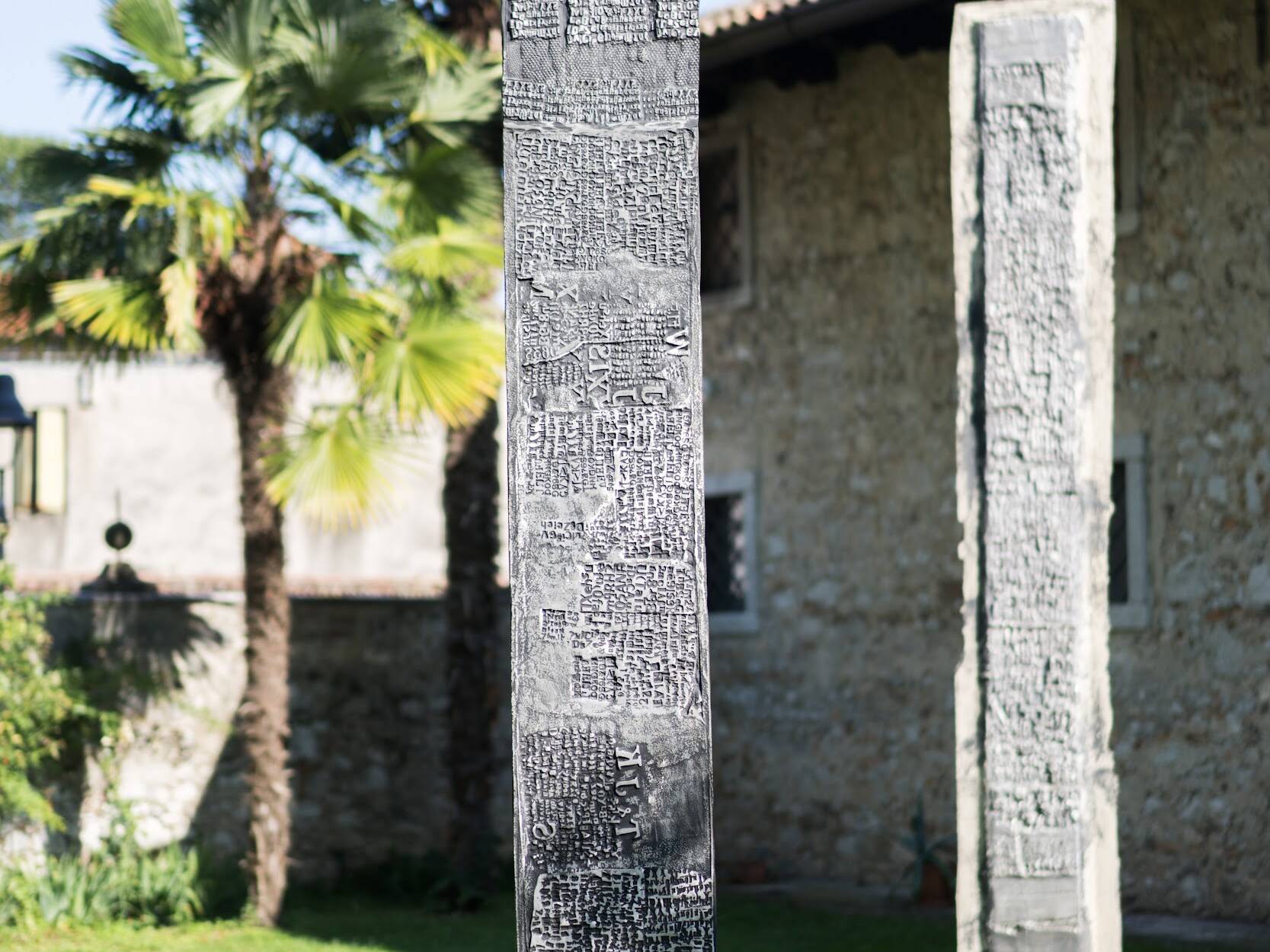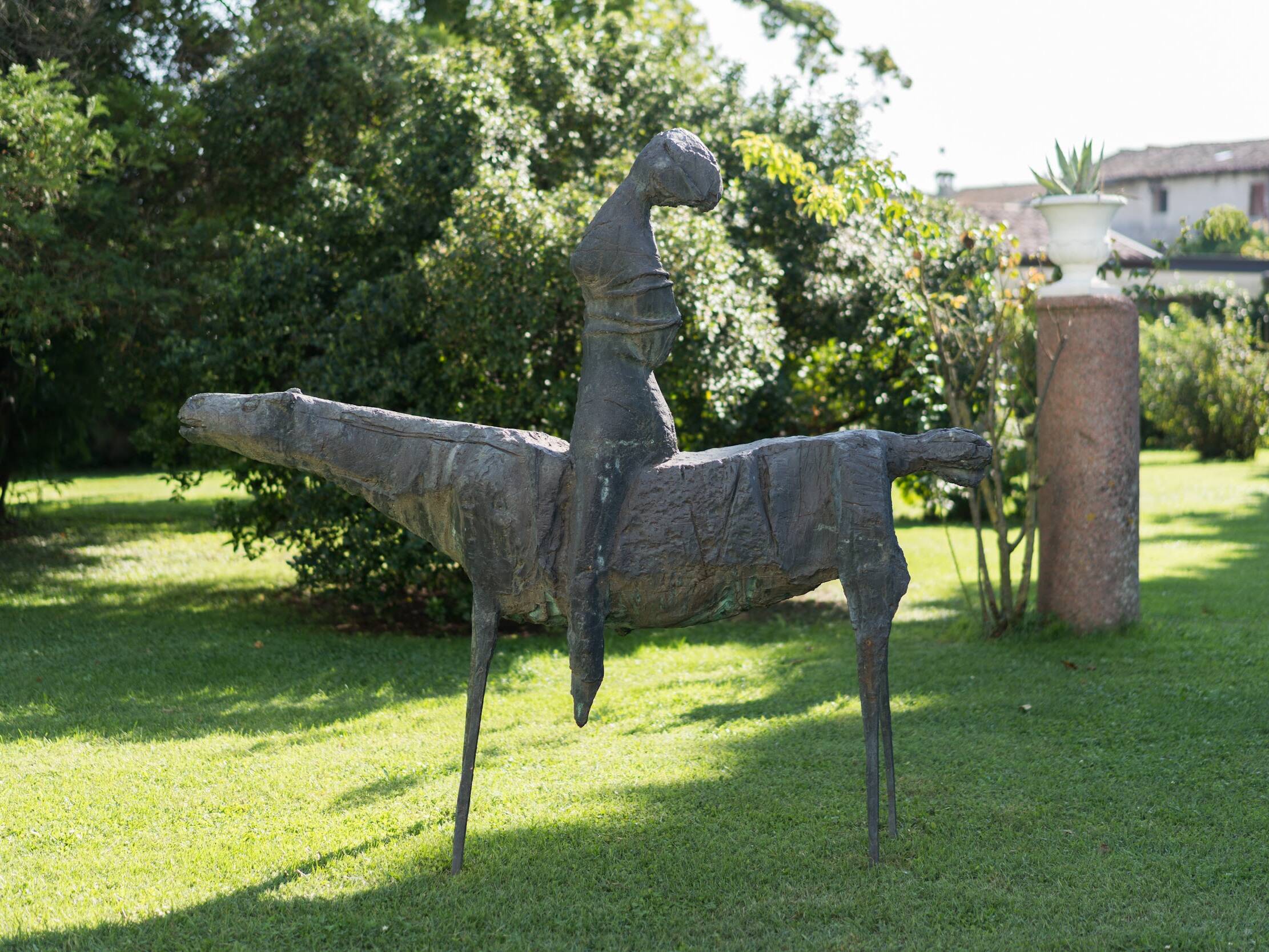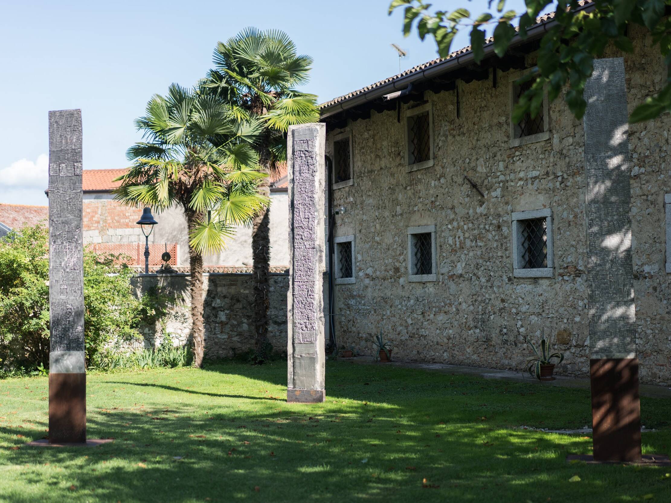 Al centro del progetto, le sculture dell’artista friulano Giorgio Celiberti (Udine, 1929), figura di spicco dell’arte contemporanea formatosi nello studio veneziano di Emilio Vedova. Le sue opere, che celebrano il rapporto primordiale tra uomo e natura attraverso la manipolazione della materia e l’accostamento di segni ed elementi primitivi, abitano ora i giardini storici delle tre dimore, stabilendo un dialogo inedito tra linguaggio artistico e paesaggio.